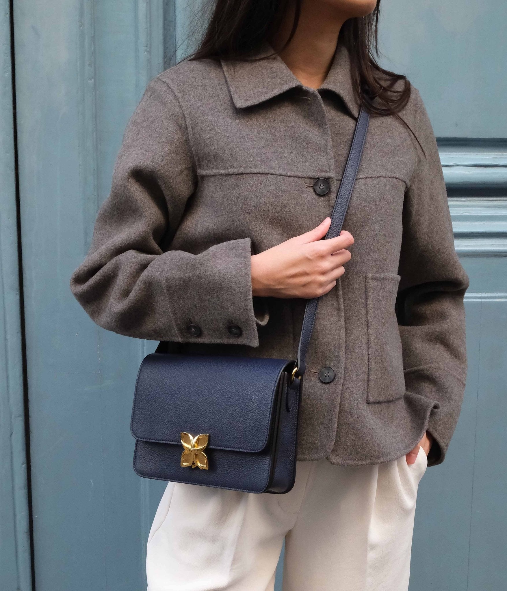The Hortensia in Navy Blue is a sophisticated and versatile piece, perfect for every season.