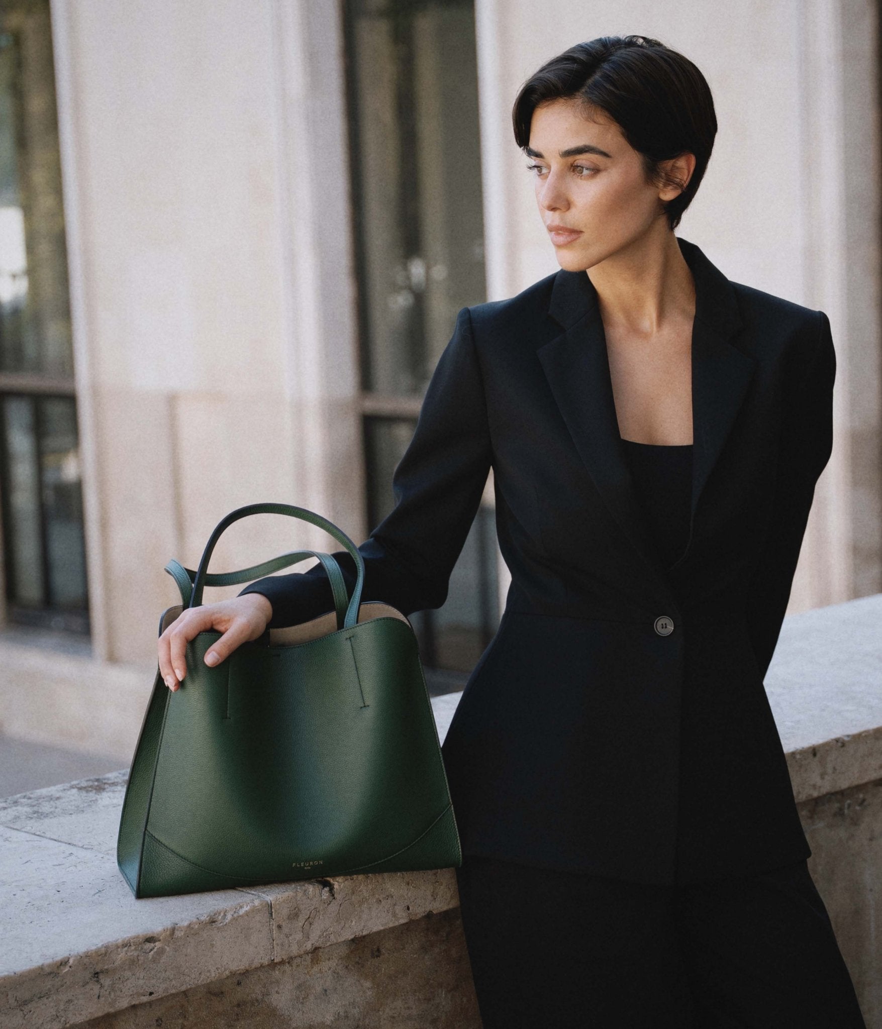 The Medium Oak tote in Vert Sapin stands out as a contemporary essential: a statement piece that blends depth, modernity, and timeless elegance.