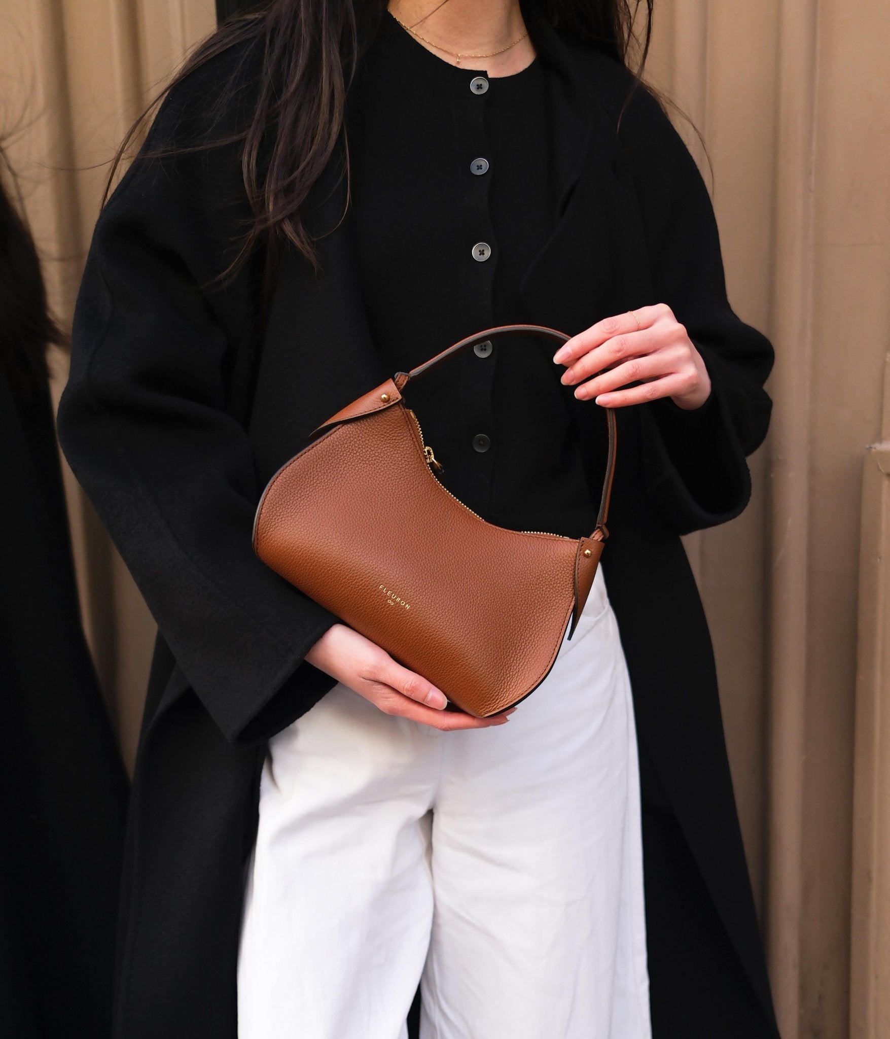 Handcrafted in our Italian workshop, this bag is made from high-quality grained calf leather, dyed in an elegant brown hue and finished with subtle gold-tone hardware for a refined touch.