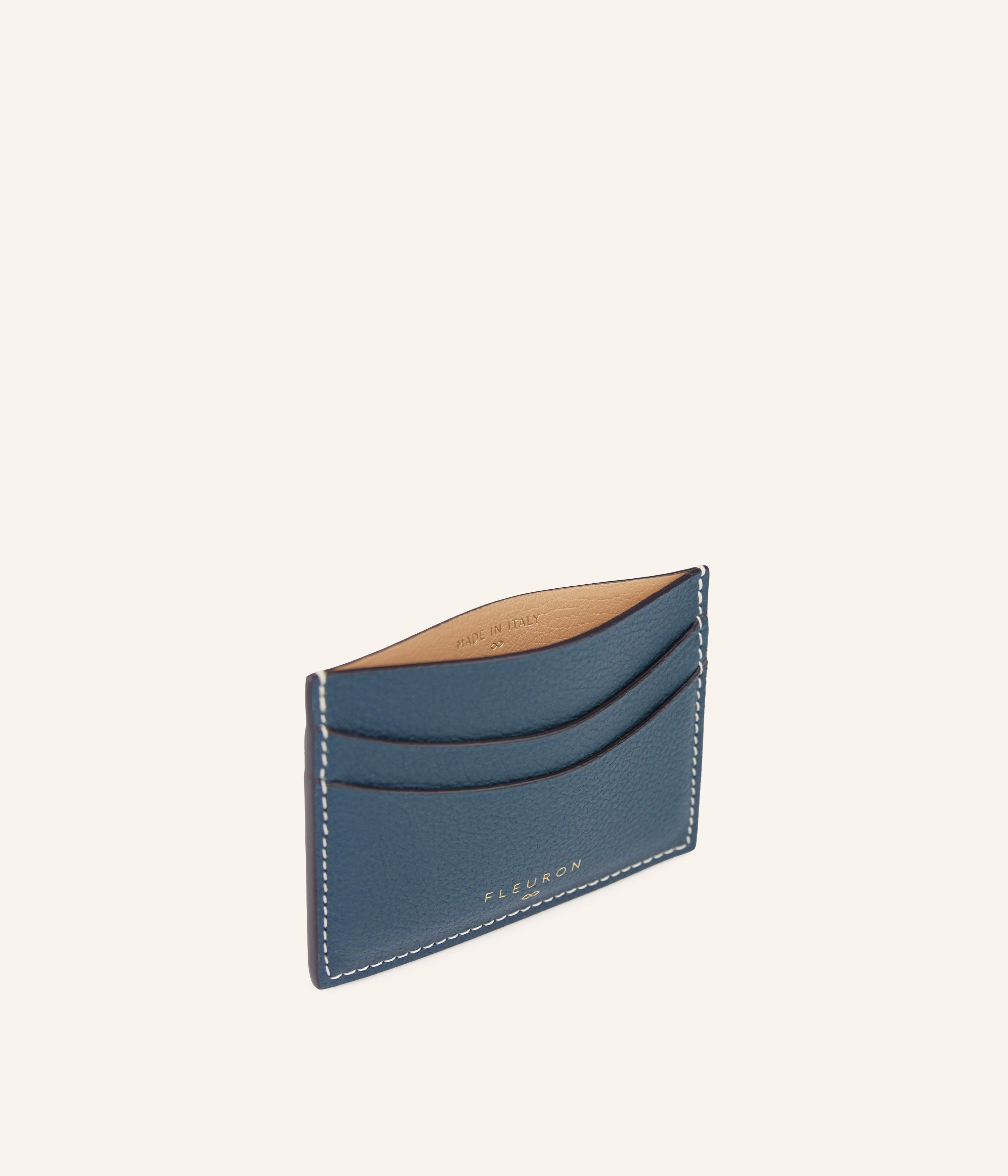The Noa Bleu Pacifique card holder, thanks to its compact format, fits easily into all mini bags. Handcrafted in Italy in grained calfskin, this card holder is the essential accessory for storing your most important cards.