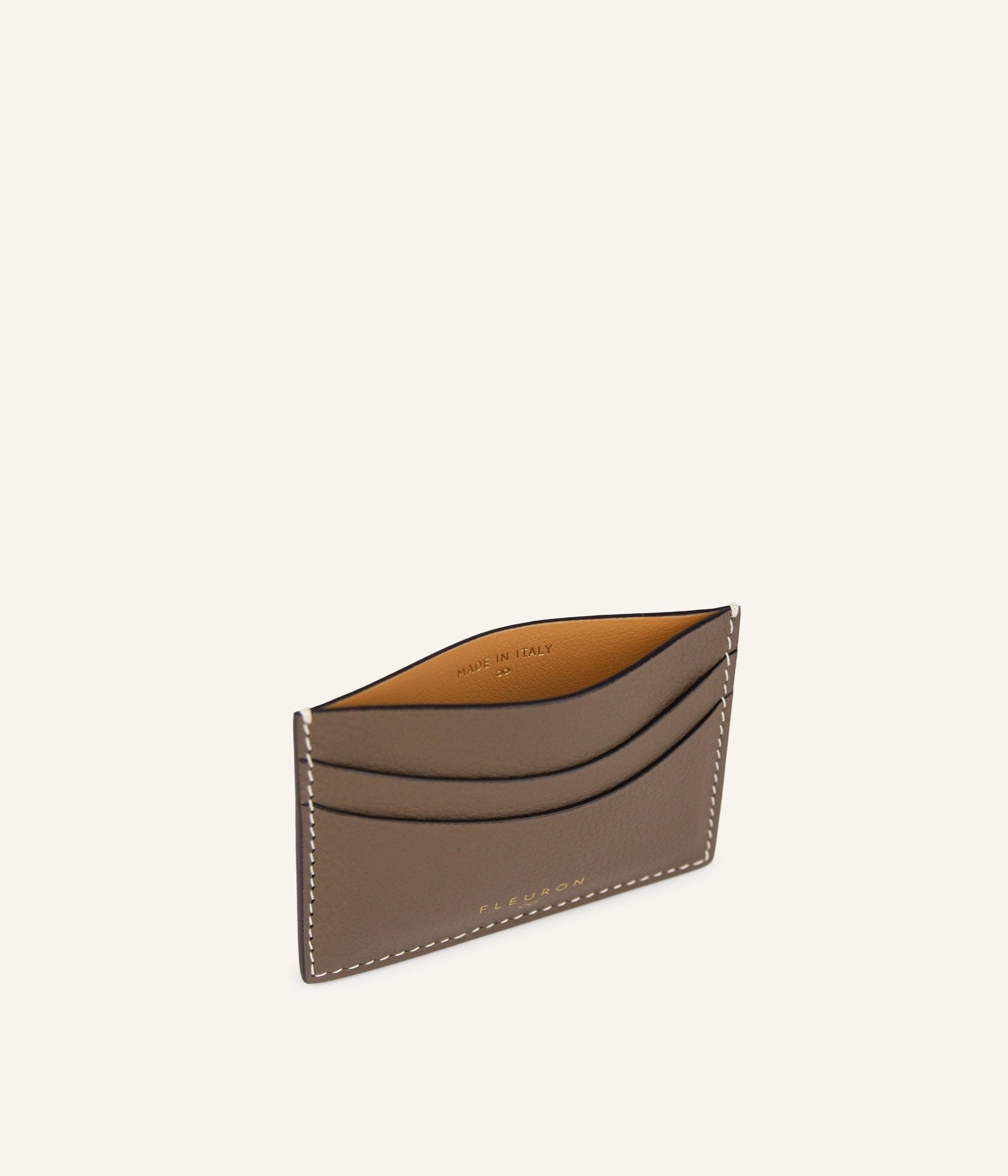 Discover Fleuron’s signature Taupe shade, designed to slip effortlessly into a pocket or pouch. Carefully crafted in Italy from grained calfskin leather, this card holder offers a chic and practical way to keep your essential cards organised.