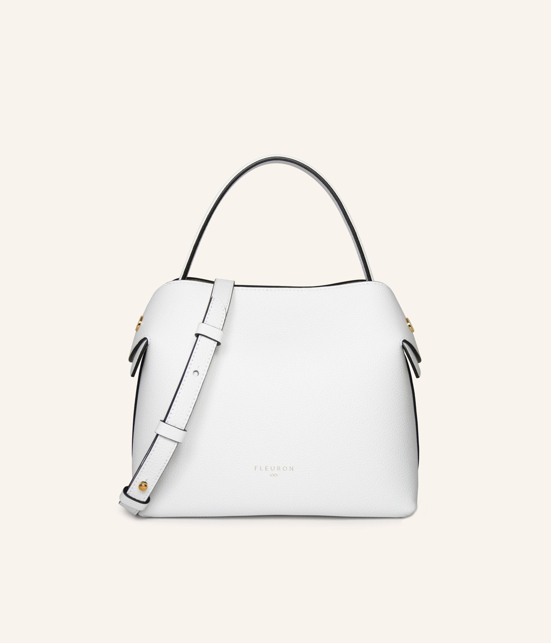 Handcrafted in our Italian atelier from grained calf leather and enhanced with gold-tone details, it can be carried by hand, on the shoulder, or crossbody. It closes with an automatic magnetic clasp over a beige interior. The sides unfold thanks to a magnetic closure, allowing the removable strap to sit elegantly on the shoulder or fall delicately when carried by hand.
