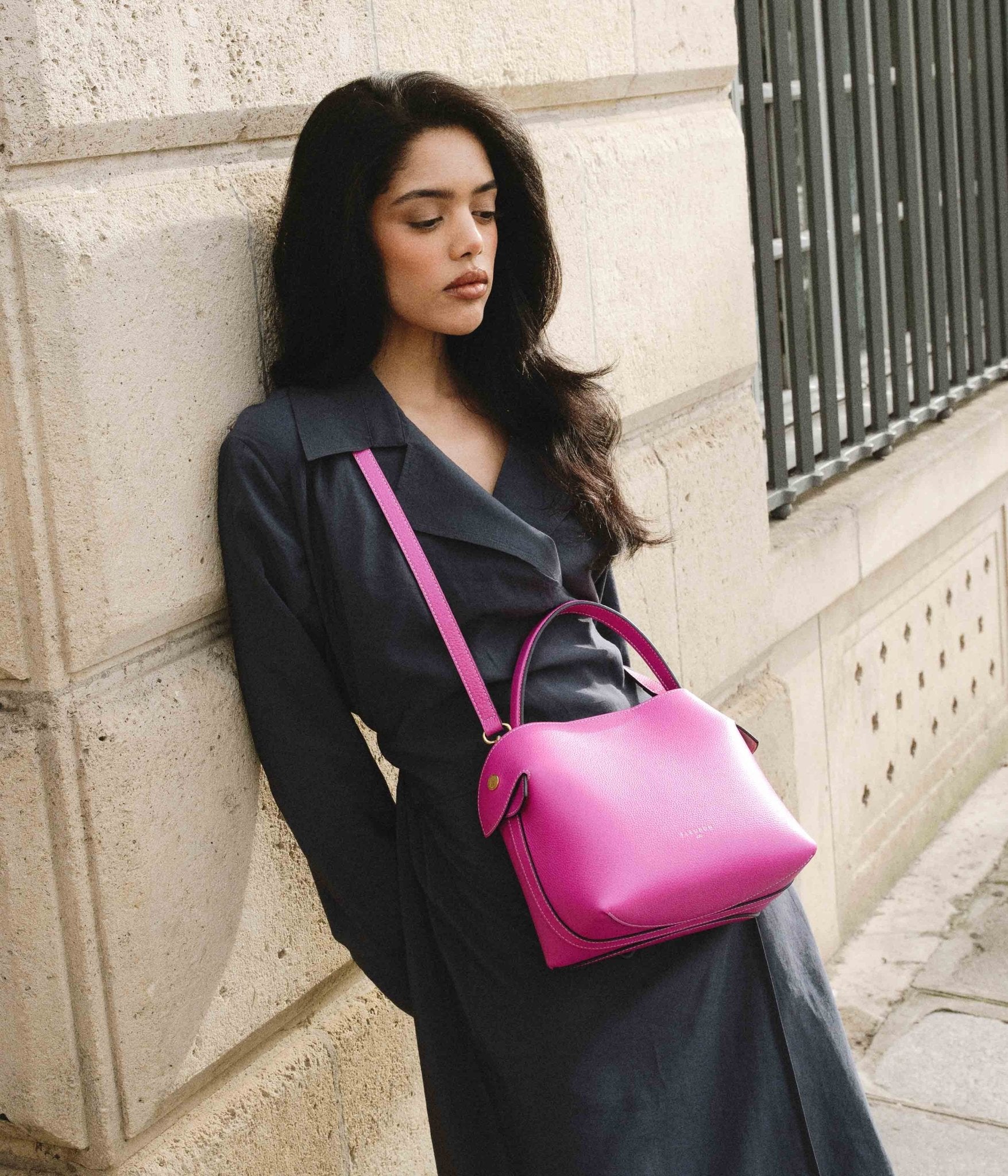For a balanced, sophisticated style, pair Rose Azalée with neutral tones such as ivory, beige, or light grey. For a more contemporary contrast, it works beautifully with deeper hues like midnight blue, burgundy, or chocolate. Gold-tone accessories will subtly highlight the look with a luminous, refined finish.