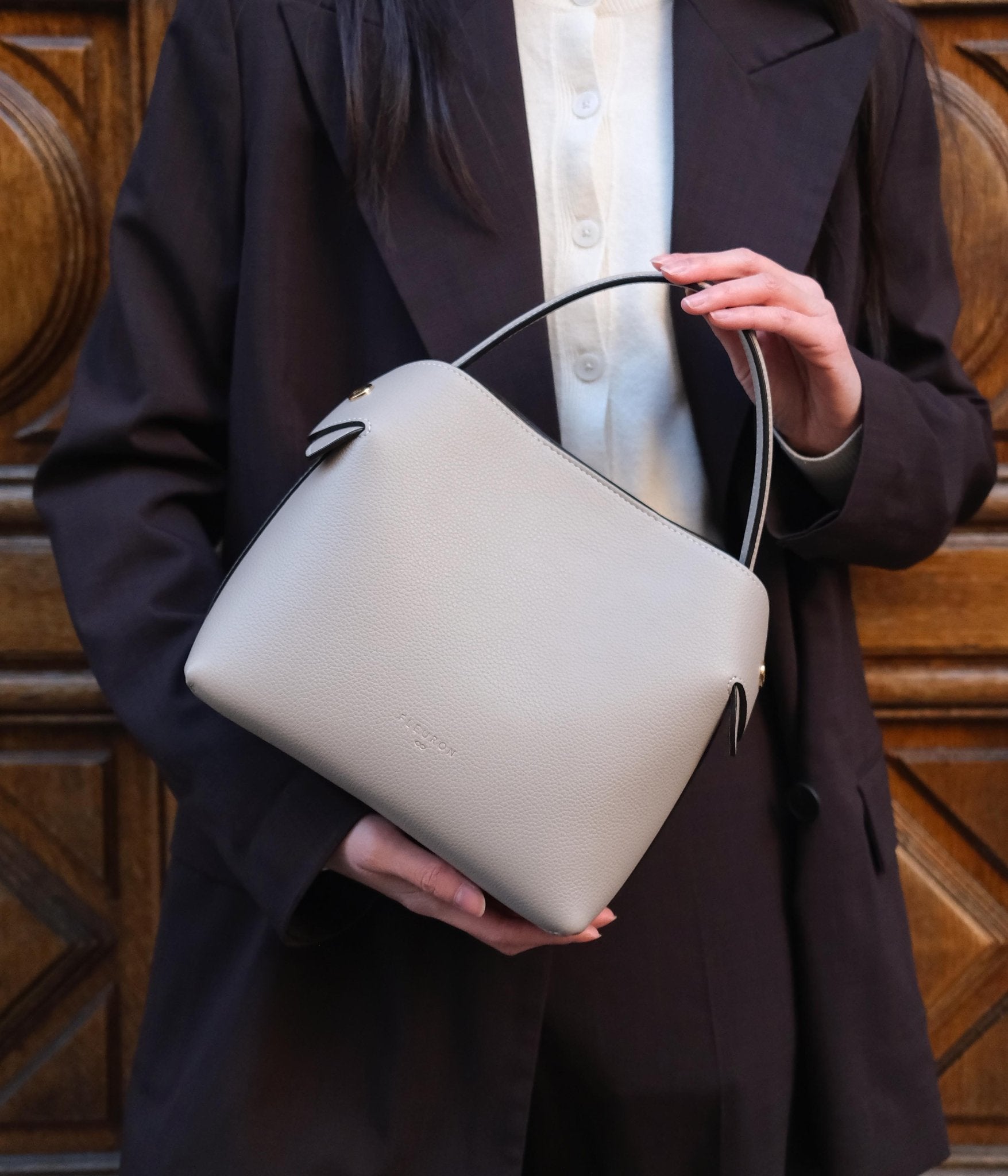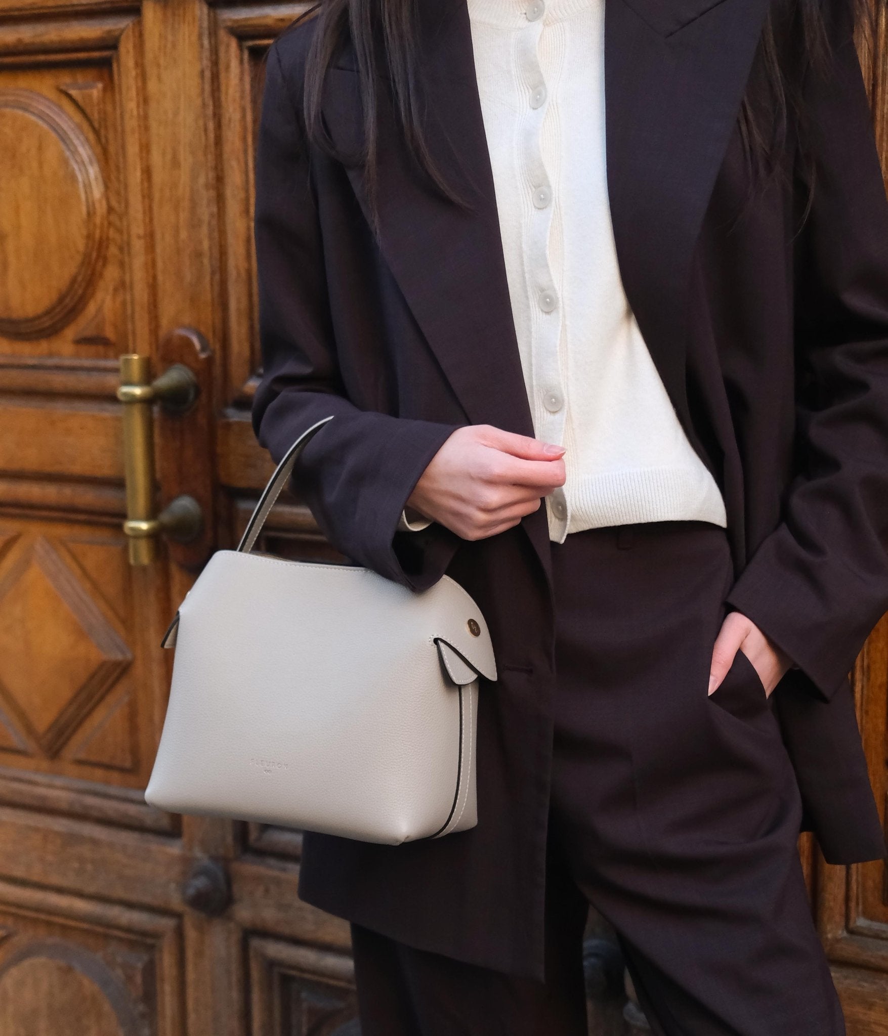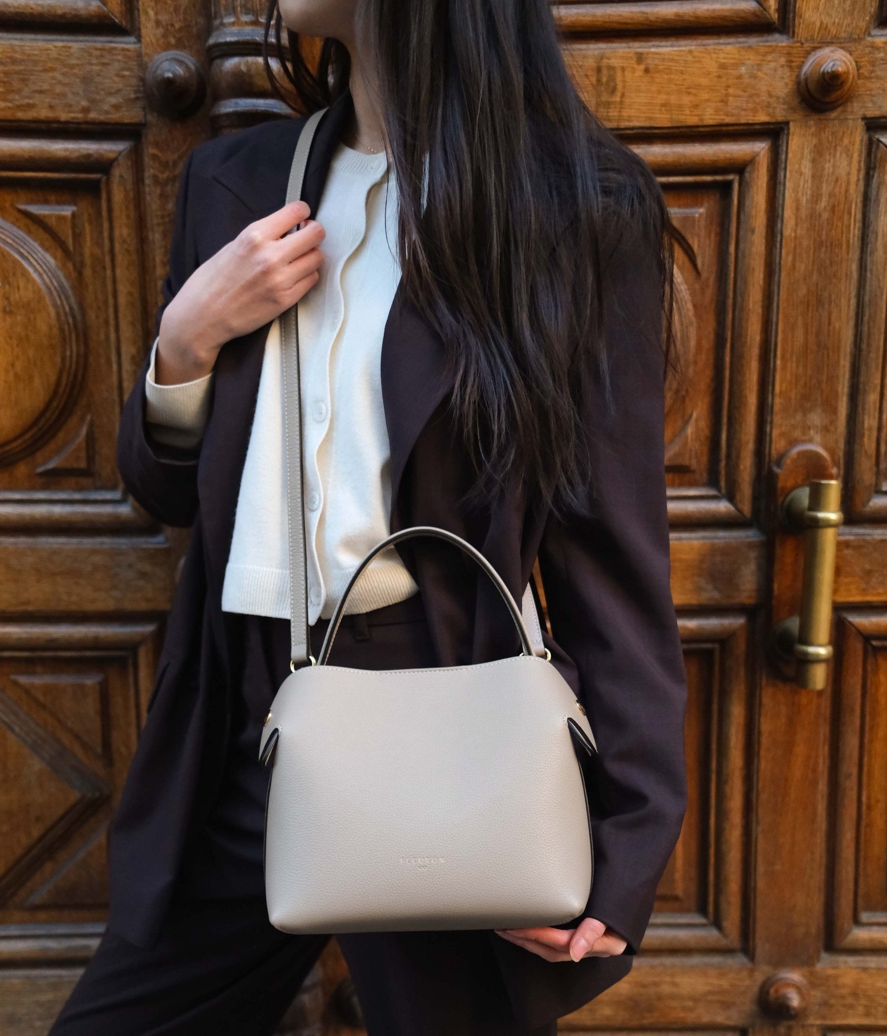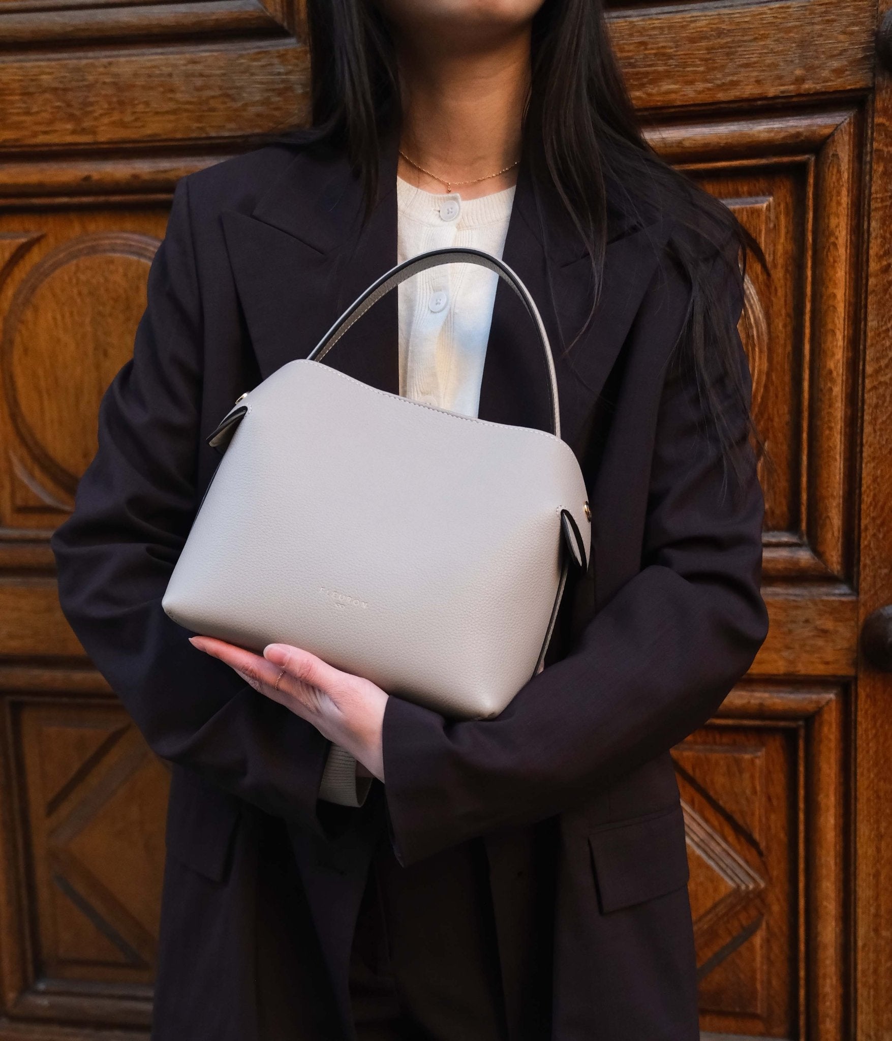For a harmonious, timeless look, pair Cashmere with light tones such as ivory, sand, or blush beige. For a more contemporary contrast, it works beautifully with deeper shades like anthracite grey, midnight blue, or chocolate. Gold-tone accessories delicately enhance the overall look.