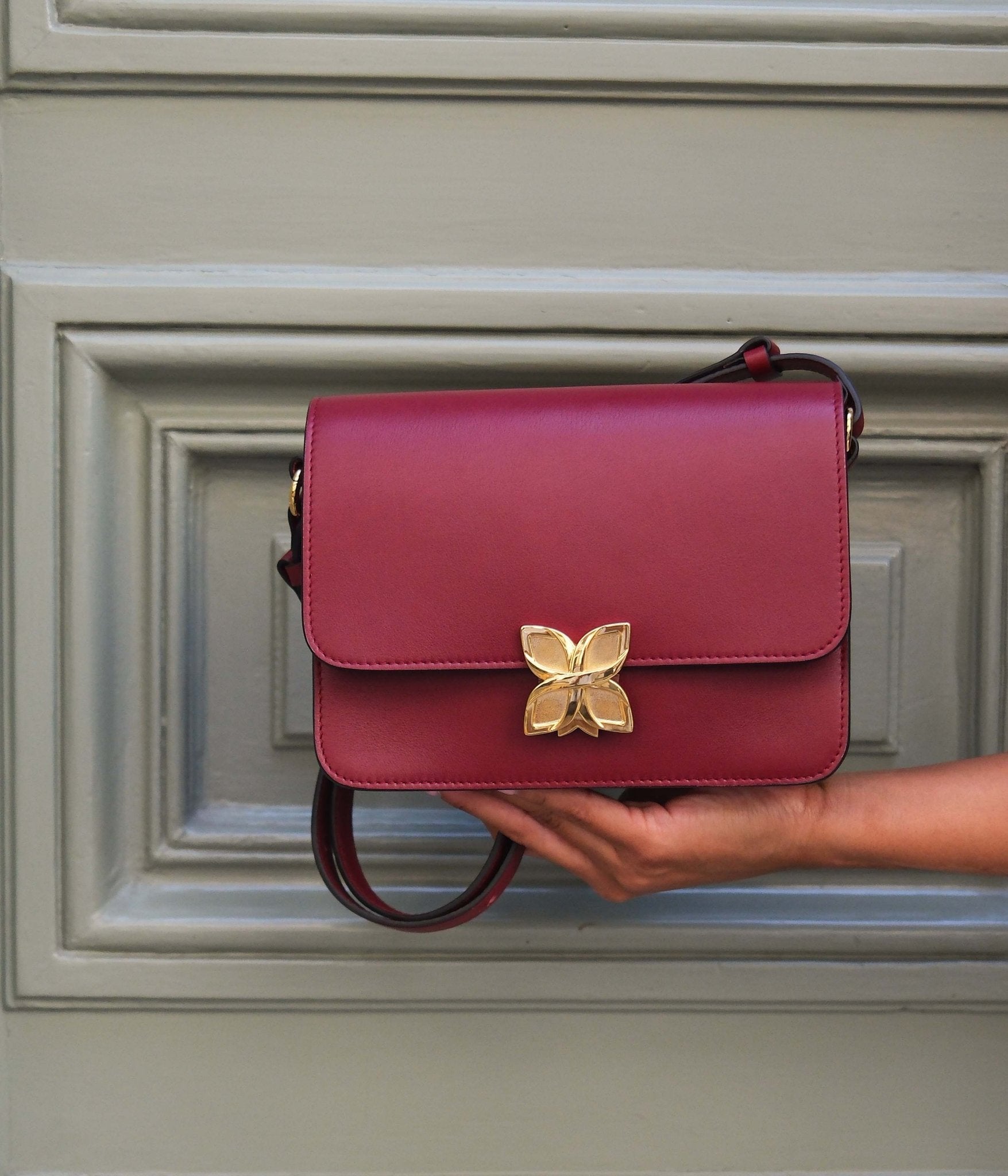 Immerse yourself in the captivating depth of our Fleuron Hortensia bag, crafted from smooth, silky calf leather in an intense Cerise shade. Carefully handcrafted in our Italian workshops, this bag embodies bold elegance and timeless sophistication.
